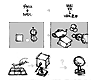 この研究は、本来の目標である、視覚で直接には感覚できない物理学的属性をも記述できるVR記述言語を開発することの一歩として行なおうとしています。研究の全体の計画に対する位相を図(上からソース言語、ターゲット言語、表示されるグラフィックスのイメージ、入力装置)に示します。この研究は図の左下の部分に当たります