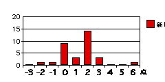 各設問のグラフは、それぞれの得点を記入した回答の度数を示す。もしそれぞれの属性について可不可がなければ、グラフは下図のように0に峰を持つ曲線をなすはずである(図は概念図で高さや広がりには意味はない)。